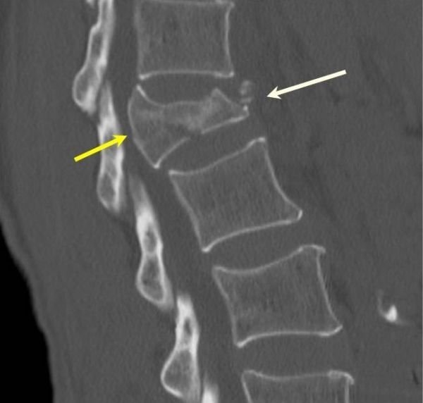 Já a ressonância magnética, permite melhor visualização de estruturas neurológicas, ligamentares e discais. A ressonância também auxilia na diferenciação entre fraturas agudas e crônicas.