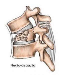 Essa é uma fratura típica em acidentes automobilísticos, quando corpo é projetado bruscamente para frente. Sua coluna é flexionada rapidamente para frente e em seguida faz um movimento de desaceleração gerando o mecanismo combinado de flexão-distração. Esse tipo de lesão, além de ser causada por traumatismos de alta energia, geralmente lesa os ligamentos da coluna além da parte óssea. Normalmente são lesões instáveis.