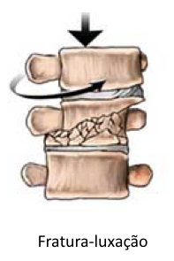 O termo luxação significa que houve um desalinhamento significativo da coluna. Portanto, na fratura-luxação além da lesão óssea existe uma combinação de “deslocamento” da coluna. São lesões muito instáveis e de alta energia. Geralmente são as lesões traumáticas mais graves na coluna vertebral.