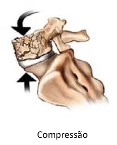 Este tipo de fratura é muito comum em pacientes com osteoporose, ou pacientes em que os ossos foram enfraquecidos por outras doenças (como neoplasias). Normalmente são fraturas por insuficiência óssea e sem traumatismo significativo. Uma fratura em “encunhamento” é um subtipo de fratura de compressão. Nesse subtipo, a parte anterior (frontal) da vértebra achata e não há comprometimento da estabilidade.